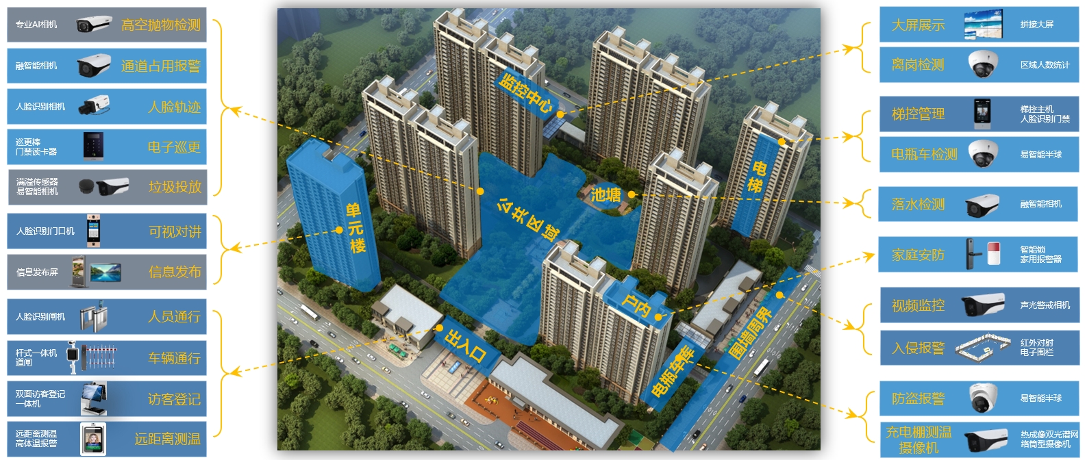 以安防可视化综合管理平台为基础,以“上帝视角”构建“全域覆盖、全面监控、全网共享、全时可用、全天可控、全程可溯”的安全监控体系,实现出入口抓拍、高清视频监控、智能图像分析、人脸识别、车辆识别管理、防盗监控、行为分析、布防预警、远程喊话提醒、可视报警、周界方案、人行道闸管理、电动自行车车牌识别、门禁系统等精确定位、业务关联和立体化显示为一体的安防综合业务管理系统,满足系统多方位的监控、管理需求,真正做到坐阵指挥中心,掌控辖区安防信息,达到“事前预警,事中控制,事后可溯” 的安全防范效果,满足各种综合安防业务应用需求。